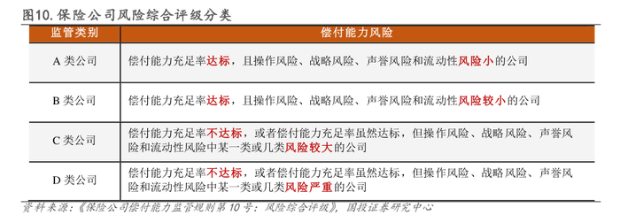 险企综合评级是衡量保险公司偿付能力的重要指标。按照《保险公司偿付能力管理规定》,保险公司需满足核心偿付能力充足率不低于50%,综合偿付能力充足率不低于100%,风险综合评级在B级及以上,才属于达标机构。