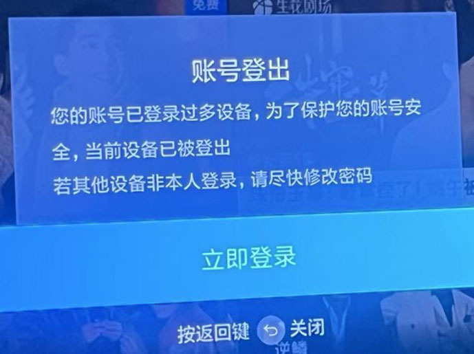 当记者询问共享人数时,对方表示最多不超过3人,并承认会出现掉线现象,称“掉线频率通常为每月两三次,主要是因为用户在多设备上登录”。然而,记者在购买后当天就掉线了三次,系统提示“您的账号已登录过多设备,为了保护账号安全,当前设备已被登出”。