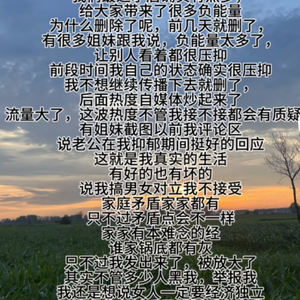 “视频是第二天晚上发布的,这段时间两个人情绪都不太好,本来只是想发发牢骚,后来没想到会发酵那么厉害,就立马删除了。”