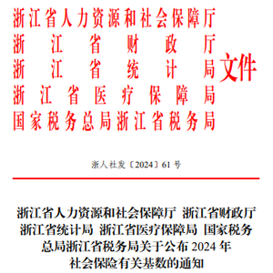 10月11日,根据《浙江省人力资源和社会保障厅 浙江省财政厅 浙江省统计局 浙江省医疗保障局 国家税务总局浙江省税务局关于公布2024年社会保险有关基数的通知》,2024年浙江社保基数上下限核定标准已确定。