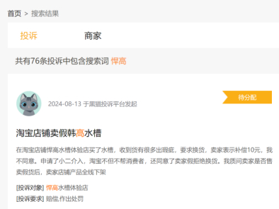 黑猫投诉平台显示,悍高集团多次因质量问题被消费者投诉。一位消费者因怀疑买到了假水槽而投诉悍高集团。