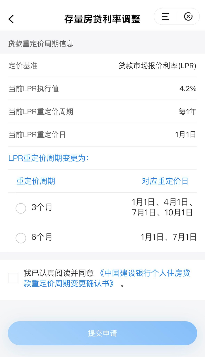 中国建设银行杭州某支行客户经理徐先生还向银柿财经解释道,若借款人的重定价日为2025年1月1日,待至当日,房贷利率将自动调整,无需提出申请。另一方面,银柿财经注意到,现阶段申请将重定价周期缩短为3个月的借款人,并不会早于1月1日享受到调整后的贷款利率。