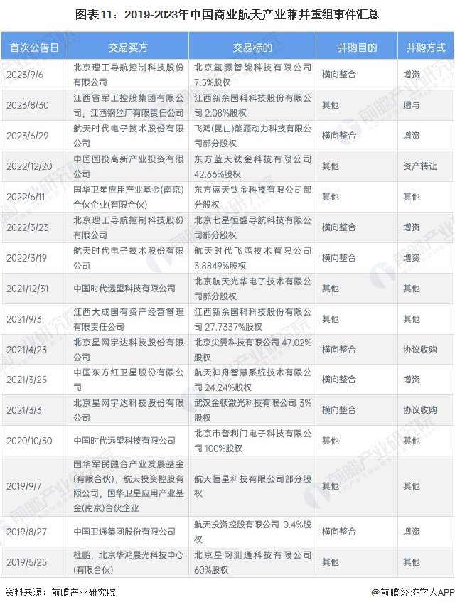 商业航天投融资及兼并重组总结