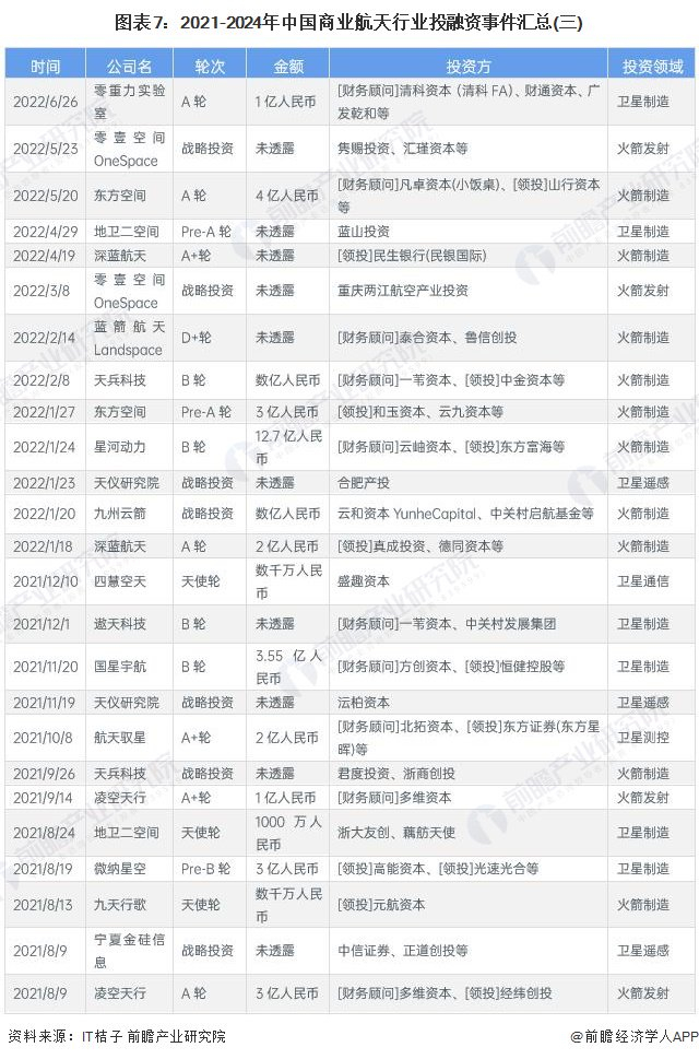 本文核心数据:商业航天代表企业融资规模;商业航天代表企业投资规模