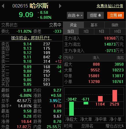 【大河财立方 记者 陈玉尧】11月6日午后开盘,A股川大智胜涨停,哈尔斯跳水下跌6%。