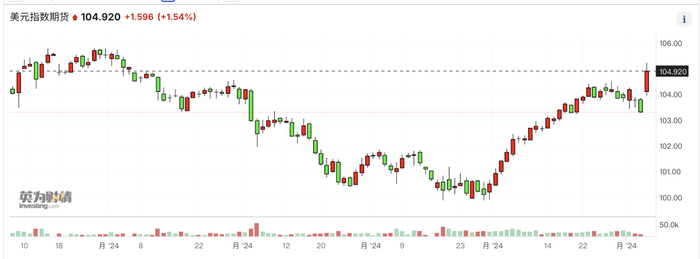从早盘开始,“特朗普交易”就一触即发,美元指数一举突破105大关,10年美债收益率飙升至4.43%附近,当时大涨约15BP,美股期货盘前大涨近2%;港股跌超2%,亚洲股市集体下挫,但A股表现强劲。