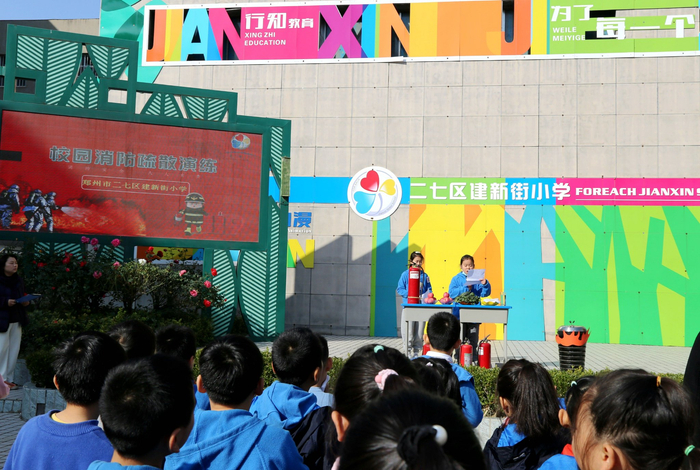 中原网讯(赵文源)11月5日上午,二七区建新街小学全体师生在二七区消防救援大队、五里堡派出所、建新北街社区等单位领导和志愿者的联动支持下,顺利开展了“校园消防疏散演练”活动。