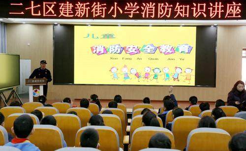 最后,四年级全体师生走进报告厅,校长肖泳等领导为同学们发放了《小学生消防安全教育手册》,并叮嘱大家利用课余时间进行传阅,在班队会上进行讨论学习。二七区消防救援大队消防宣传员杨志勇警官则为大家带来了一堂生动的“儿童消防安全教育”专题知识讲座,内容涉及认识火灾危害、火灾报警注意事项、正确区分消防标志、不同情景下火场逃生的具体方法等。同学们认真倾听,积极互动,一次次正确的回答赢得了在场领导的一致称赞!