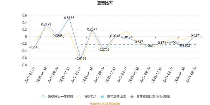 截至9月30日,基金近三年夏普比率为-0.2888,位于同类可比基金140/220。