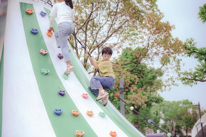从“开森部落”大门进去,右手边是无动力乐园,超大型儿童攀爬设施适合晴天户外活动,滑梯、攀网、蹦床、挖沙,孩子们可以在里面尽情探索玩耍。无动力乐园旁边则是室内乐园,很适合低龄孩子,光是这一个点位就能消磨大部分时光,让孩子们乐不思蜀。
