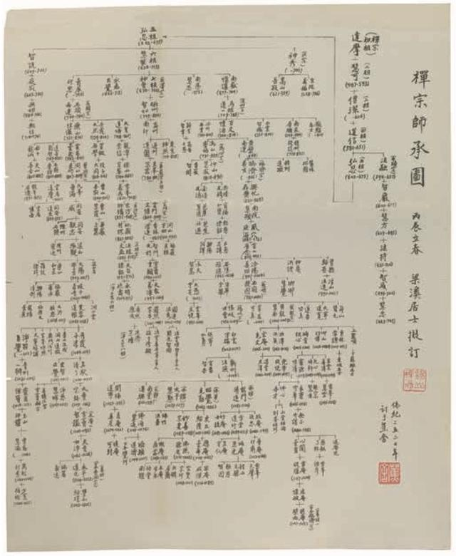禅宗师承图,纸本,顾一樵作,1976年出版,出自《禅宗师承记》,顾一樵编著,1976年出版