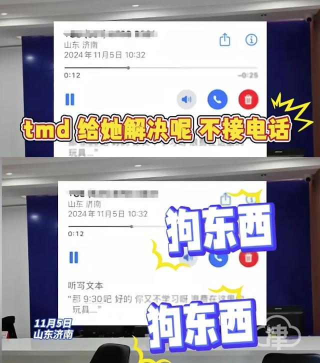 录音里,一个人说:“给她解决她不接电话,狗东西。”另有一人应和说:“狗东西。”