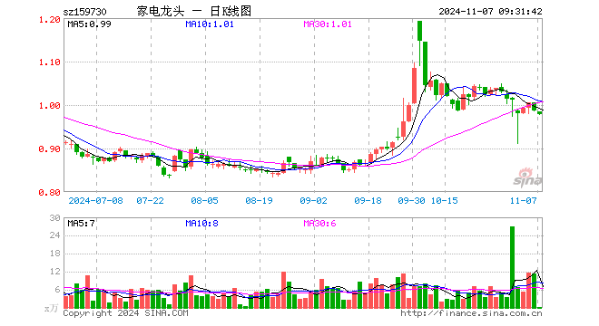 龙头家电ETF(159730)业绩比较基准为国证龙头家电指数收益率,管理人为博时基金管理有限公司,基金经理为尹浩,成立(2021-12-13)以来回报为-1.08%,近一个月回报为-7.74%。