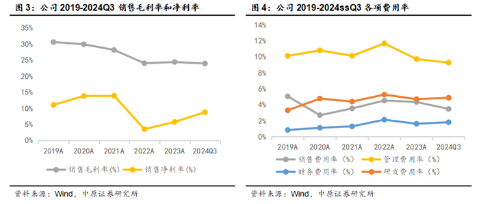 事件:公司公布2024年三季度报告,前三季度公司实现营业收入19.30亿元,同比+1.94%;实现归属母公司股东的净利润1.55亿元,同比-12.64%;扣非后的归母净利润1.35亿元,同比-14.12%。单看三季度,公司实现营业收入7.08亿元,同比+0.10%,环比+21.99%;归母净利润0.49亿元,同比-15.00%,环比-2.49%;扣非后的净利润0.43亿元,同比-10.93%,环比+4.42%。