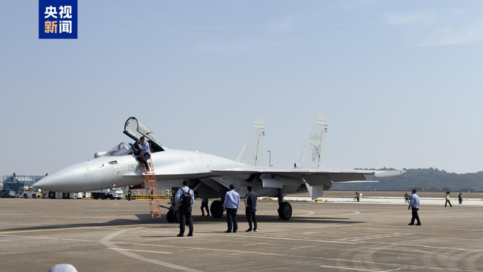 歼-15T落地珠海,海军战机首次出现在中国航展。