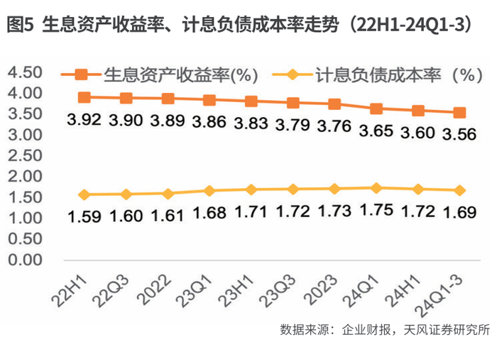 2024年前三季度,招商银行净息差为1.99%,同比下降20BP,环比下降2BP。受贷款市场报价利率(LPR)下调及存量房贷利率下调的影响,叠加有效信贷需求不足,新发生信贷业务收益率同比下行,导致生息资产收益率下降,这是拉低净利息收益率的主要因素。