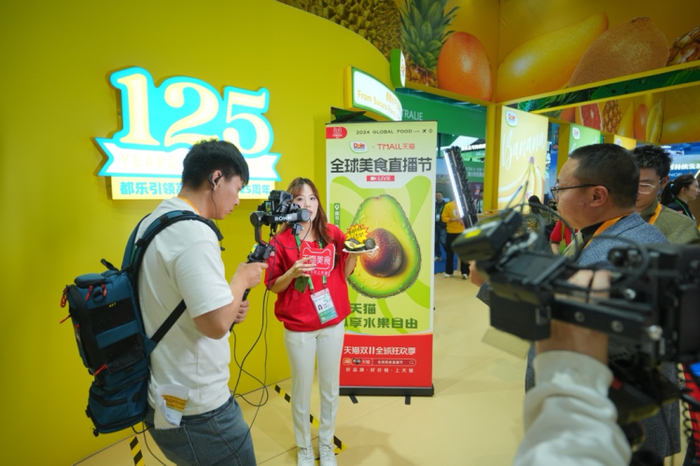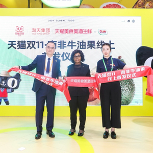 11月6日下午,淘宝天猫联合都乐在进博会食品与农产品展区举办了天猫双11南非牛油果线上首发仪式。