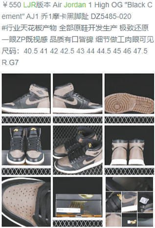 还有一个厂商,自称“海外代购专供,毫无压力”。通过店铺提供的二维码,记者扫码进入了相册,发现这里“高A”的潮鞋、奢侈品品类极多。工作人员介绍了一款乔丹鞋,形容它为“行业天花板、全部原鞋开发生产、极致还原、一眼ZP(正品)”。