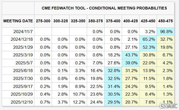 据CME,市场预计,美联储11月大概率将降息25基点,12月将再次降息25基点。
