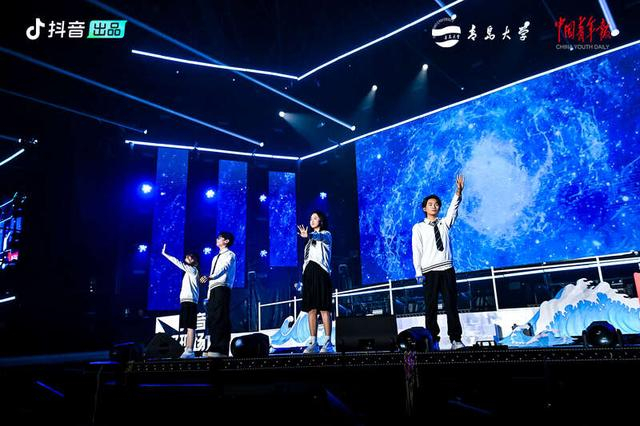 抖音平台工作人员介绍,演出主题结合青岛海滨城市的特点以“炙热远航”命名,并将舞台打造成“轮船”造型,是希望同学们能够胸怀理想,乘风破浪。