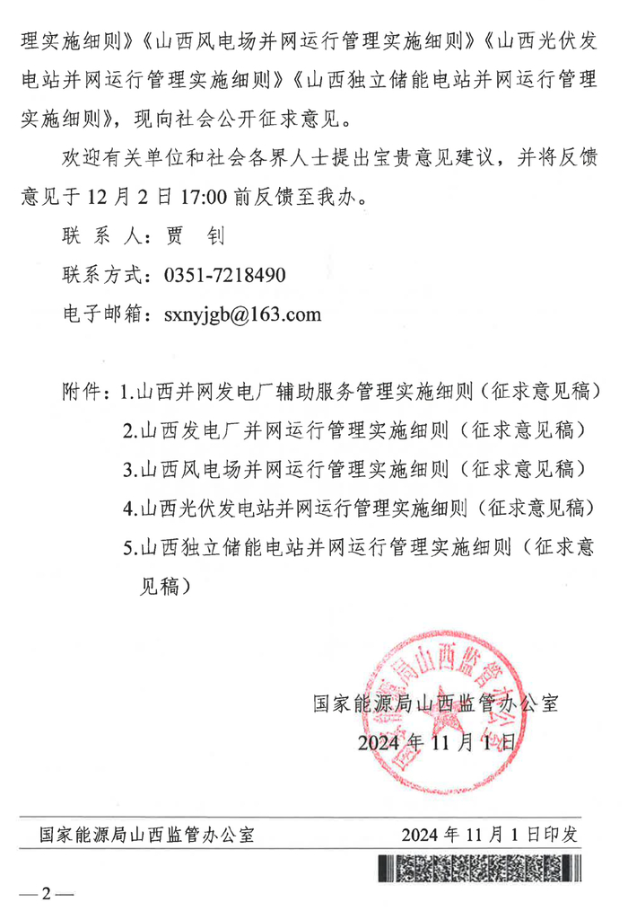 山西独立储能电站并网运行管理实施细则(征求意见稿)