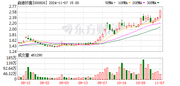今年以来,启迪环境的股价一直处于低迷状态,在2元/股左右徘徊,截至11月7日收盘,报2.63元/股,总市值37.49亿元。