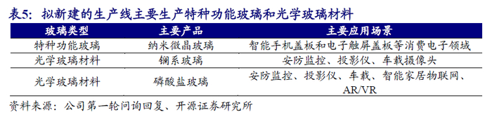 特种高清成像光学玻璃材料扩产项目”拟在公司现有厂区内扩建6条特种高清成像光学玻璃材料产线。项目基于公司多年光学玻璃窑炉设计及制造技术,采用自主研发,自主组建 6 条生产线,拟新建的生产线主要生产特种功能玻璃和光学玻璃材料,其中:特种功能性玻璃主要为纳米微晶玻璃等,光学玻璃材料包含镧系、磷酸盐等光学玻璃。