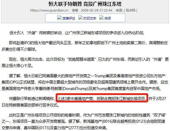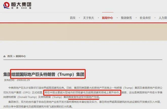 这一年的2月,恒大集团结盟国际地产巨头特朗普集团。