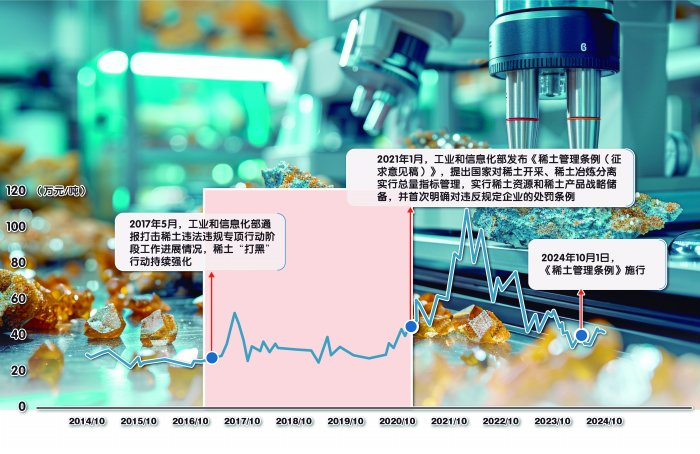 《稀土管理条例》10月1日起正式施行。条例明确,稀土资源属于国家所有,国家依法加强对稀土资源的保护,对稀土资源实行保护性开采。任何组织和个人不得收购、加工、销售、出口非法开采或者非法冶炼分离的稀土产品。