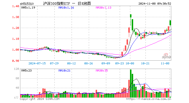 沪深300指数ETF(515310)开盘涨4.62%,重仓股贵州茅台涨0.71%,宁德时代涨2.61%