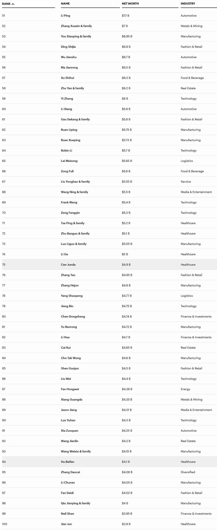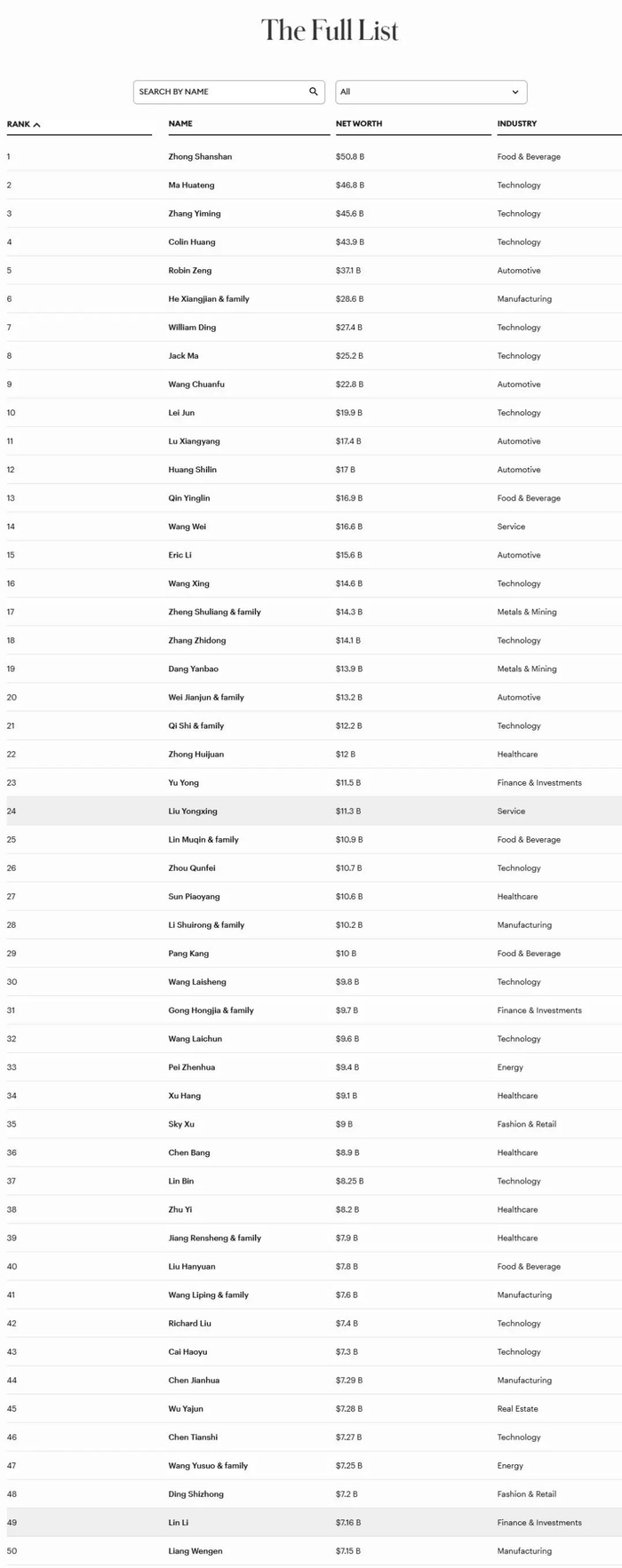 《福布斯》指出,中国一系列促进经济增长的措施为股市注入活力。自去年测算财富以来,沪深300指数上涨12%,前100富豪的财富总和重回1万亿美元,较去年8950亿美元增长15%。进入这份榜单前100名的最低净资产门槛也从2023年的34亿美元增加到39亿美元。今年共有60位企业家财富增加,但有22位企业家财富下滑。