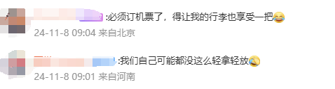 网友:“很温暖有爱”“订机票让行李享受一把”。