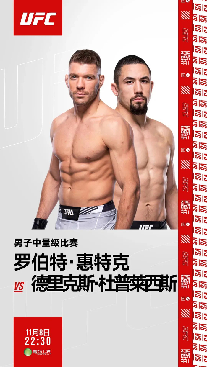 至于这场比赛之后,德里克斯·杜普莱西斯与罗伯特·惠特克,谁能在职业生涯的道路上更迈进一步?今晚22:30,青海卫视《龙斗之UFC》,共同见证!