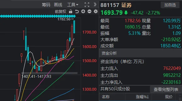 毕竟今天领跌的除了券商,还有银行、地产以及白酒等权重板块。