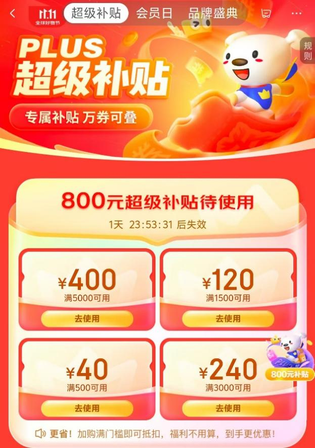 京东11.11提前领800元PLUS会员超级补贴 爆款好物真5折
