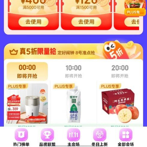 为了给广大PLUS会员带来“省上再省”的购物体验,本次京东PLUS会员日有超多福利放送。即日起,PLUS会员用户可领取800元超级补贴券,包含满5000元减400元、满3000元减240元、满1500元减120元、满500元减40元4个档位,每档补贴券领取时到手3张。