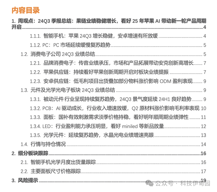 证券研究报告《24Q3 季报总结:果链业绩稳健增长,看好 25 年苹果 AI 带动新一轮产品周期开启》