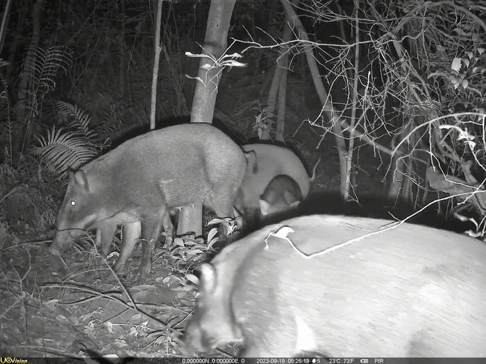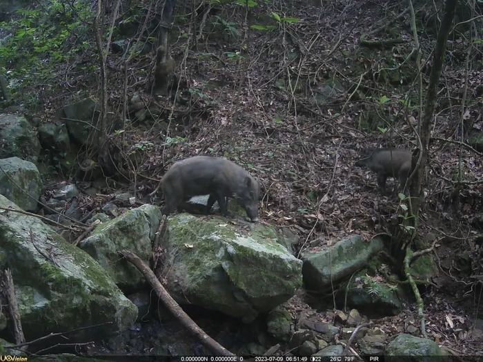 ▲2023年9月19日,银瓶山森林公园用红外相机在野外监测拍到了有野猪出没