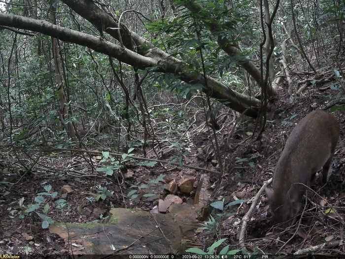 ▲2023年8月4日,在大屏嶂森林公园用红外相机监测拍到了野猪出没