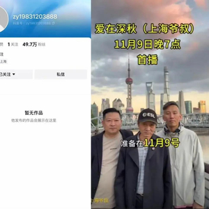 10月30日,“爱在深秋”上海爷叔开通了个人账号,截至发稿粉丝接近50万个,从开通到被封禁账号,该账号仅存活9天。