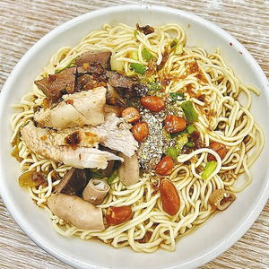 除了卤汁,“小庙”腌面上还有磨碎的芝麻粉末、炸得香脆的红皮花生米、爽脆的猪杂或软烂的牛腩等。马歌说,有的店家还会附送一碗清甜的冬瓜海白汤,吃一口腌面配一口汤,美妙滋味尽在舌尖绽放。