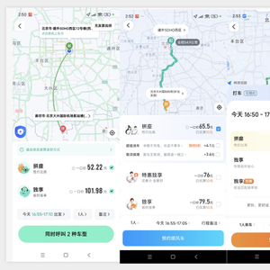 另外,网约车、顺风车这样的出行服务,具有明显的地域特征,高德也并非一直有价格优势。