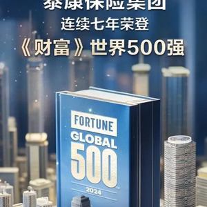 在2024年《财富》世界500强排行榜上,泰康保险集团以394.116亿美元的营业收入位列榜单第381名,排名较上年提升50名,连续七年入围《财富》世界500强,是非上市险企中名副其实的扛鼎者。