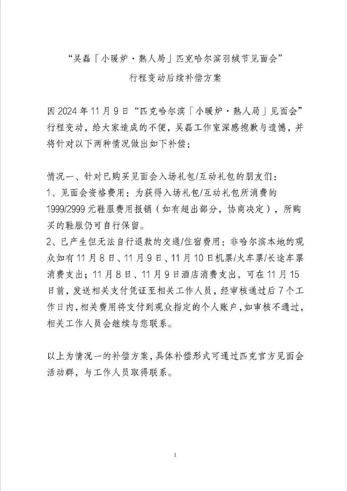 ①将弥补粉丝为获得入场礼包而消费的鞋服费用(鞋服仍可自留);