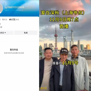 10月30日,上海爷叔“爱在深秋”开通个人账号,11月8日,该账号被封。短短几日,“爱在深秋”账号就积攒了近50万粉丝,而从开通到被封禁账号,该账号仅存活9天。