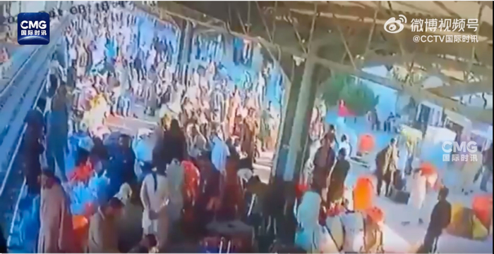 监控画面显示,事件发生时有大量旅客聚集在火车站台,现场突发爆炸,随后人群逃散。