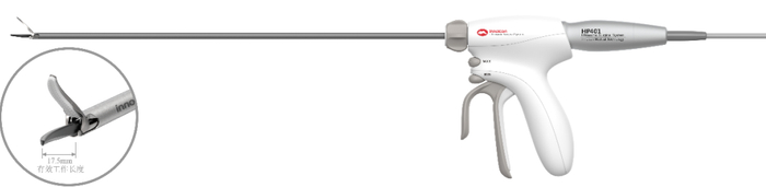 加长刀头设计,有效切割长度达17.5mm,能够安全有效闭合7mm直径血管。