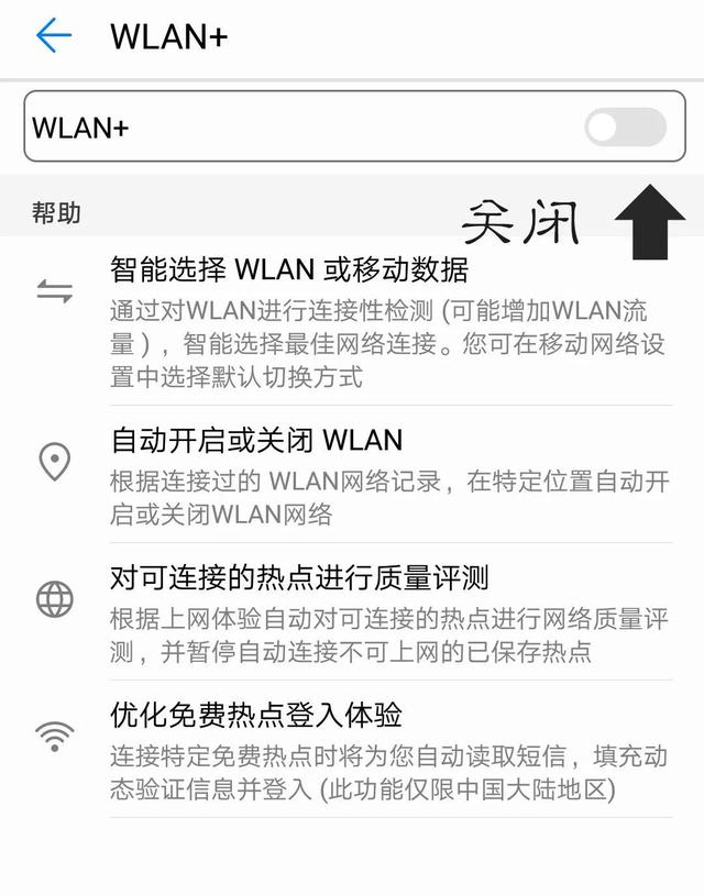 ② 安卓系统(以华为为例):设置-WLAN-WLAN+,点击关闭。
