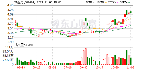 业绩方面,在2023年巨额亏损4.15亿元的基础上,ST百灵2024年上半年净利润也不乐观,期内营业收入为21.43亿元,同比增长12.81%;归母净利润为8746.14万元,同比下降27.32%;扣非归母净利润为3256.32万元,同比下降72.28%。10月25日,ST百灵发布2024年三季报。报告显示,公司前三季度营业收入为27.75亿元,同比下降1.22%;归母净利润为8821.60万元,同比下降37.20%;扣非归母净利润为2546.97万元,同比下降81.04%;基本每股收益0.06元。