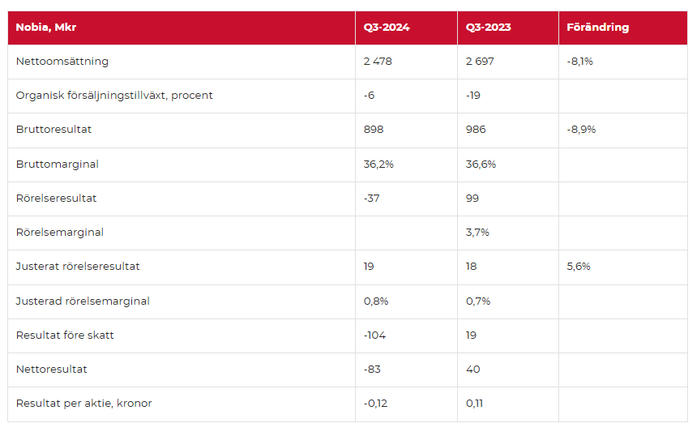 11月6日,北欧知名厨具制造商Nobia发布2024年第三季度财报。报告显示,受市场环境影响,公司销售额同比下滑,但调整后经营业绩与去年同期基本持平。数据显示,公司第三季度净销售额为24.78亿瑞典克朗,同比下降8.1%,有机销售增长为负6%。期内毛利润为8.98亿克朗,毛利率为36.2%,调整后经营利润为1900万克朗,调整后经营利润率为0.8%。税后利润为-8300万克朗,每股收益为-0.12克朗。